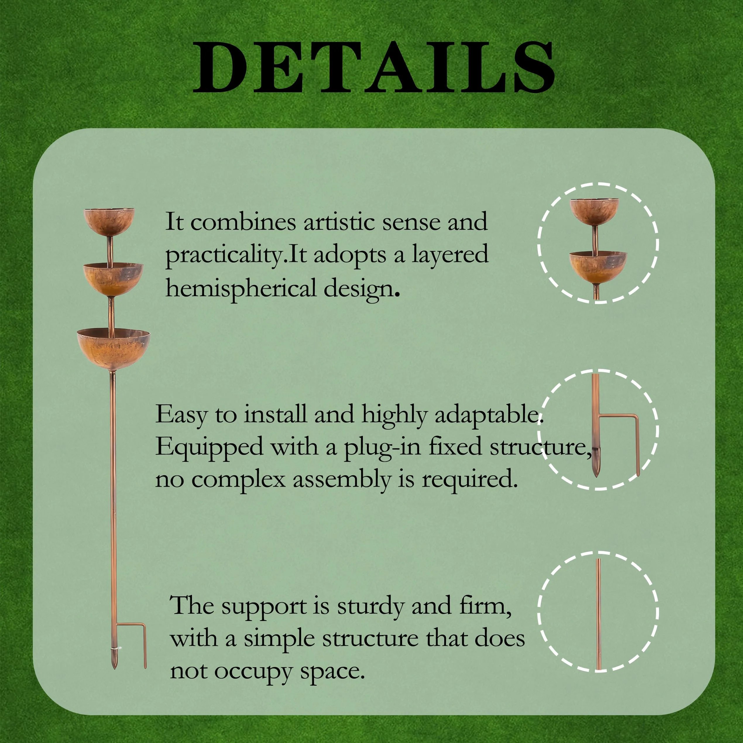 ✔ Turns rain into a relaxing garden feature